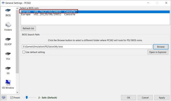 • 1.7.0: Try pcsx2-avx2.exe. If the program fails to start, then use pcsx2.exe.