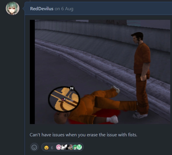 RedDevilus: "I've recently bought GTA 3 second-hand and did my regular testing phase when I heard talks about a cloned character, it was not triggered on my screen because I skipped the intro FMV. So if anyone says we only fix certain games or big bugs, you can look again. It was a minor bug that was actually a regression. Meanwhile, before the fix, I had my own methods of solving the issue but refraction wasn't happy with this brute-force approach"