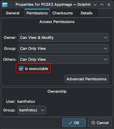 - Right-click on the AppImage, choose properties, then find the option to mark as executable.